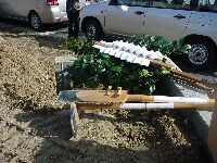 | 地鎮祭の道具です。鍬と鋤。 | 神主さんは越木岩神社から来てもらいました。 |