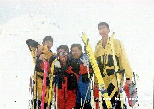 | 立山 雷鳥平で同期4人と | 御山谷を黒部ダム目指して滑降する |