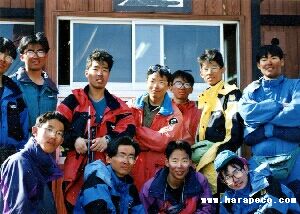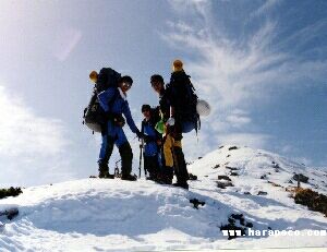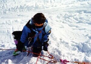 | 確保訓練でザイル操作をする | 強風吹きすさぶ中の登頂 |