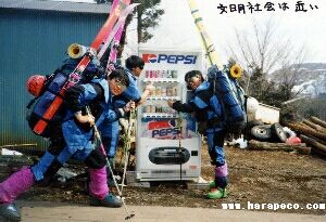 合宿終了地(土湯温泉)を目指して進む。 自動販売機を見て感激してしまう。 |