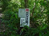 駐車場からは5分ほど歩くと、農道がとぎれ、登山口につながる。入り口にはクマ出没注意の看板が!クマにであったら、目をそらしたほうがいいのか、はたまたにらんだほうがいいのか、とクマ対策についてベラベラしゃべりながら歩く。幸い議論のネタを実践する機会はなかった。十分鈴代わりになったようである。 登山道は沢沿いを右岸、左岸と飛びながら走っている。なんども渡渉しながら、沢の音と水飛沫を浴び、夏の山行を楽しむ。沢はナメ滝やお釜をたくさん持っており、おもわず飛び込みたい衝動にかられる。子供達を連れてくるだけでも楽しいだろう。堰堤を5つ越えると道は沢からしだいにはなれ、樹林帯を急登する。風はなく、湿度が高いこともあり、汗が吹き出てくる。