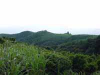鞍部にはちいさな標識がある。ここから岩篭山まで30分だ。ほとばしる汗もそのままに山頂へ向う。ここまら山頂まではアザミや野生のユリがお出迎えしてくれる。ユリはちょうど花が咲かせていた。薄い笹の道を登ると、そこは岩篭山山頂である。今日はかすみがかかっており、展望はいまひとつだ。曇天ではあるが、風がまったくなく、わずかな休息のあと、第二の目的地であるインディアン高原に向かう。ここからみるかぎり笹薮である・・・いやだなあ