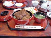 メニューはカツ丼がメインであるが、そのほか、ハンバーグなどの洋食屋さんに通常あるものもある。カツ丼にはどこにも「ソースカツ丼」とは書いていないので注意!ほかにパリ丼というのもある。 |