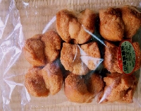 沖縄の母ちゃんこと「藁火」のおばちゃんにもらった沖縄のお菓子でござる。作り方はうーん、正直言って良くわかんないです。味は硬いドーナツという感じ。水かお茶がないと少々喉が詰まってしまう。 |