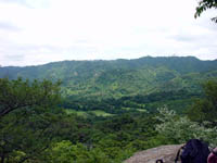風吹岩には芦屋川方面から登ってきたと思われるハイカーでいっぱい。さっそく港が見えるところにどっかり座ってテルモスにいれてきた緑茶を飲み、今年のあたまにモンベルで購入してそのままになっていたナッツバーを食べる。暑さでベタベタで食べにくかったが腹持ちはよさそうだ。うしろではおばちゃんたちがシートを敷いて世間話。今日は神戸も大坂もくっきり見えていい眺め。 さて、まだ12時くらいだ。これからどうしようかな思って地図とにらめっこしながらふと頭を左にやると岩岩した山が眼に入る。荒地山だ。お!ここはまだ行ったことがない山だ。さっそくこの山へいくことに決める。六甲最高峰から右へ道を分け荒地山への道に入る。山の名前どおり道もちょっと荒れ気味。(爆)荒地山の稜線に上がって振り返ると六甲の峰峰がスカイラインを描いている。六甲のゴルフ場も上から見える.