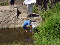 豪邸見学をたのしみながら歩くと芦屋川の上流に出た。緑がいっぱいの川でなんだかとっても幸せな気分になる。子供達が川にはいって魚をタモですくって楽しんでいた。外で遊ぶ子供達をひさしぶりに見てこちらもうれしくなる。阪急の高架が見えてくるとそこはもう終点の芦屋川駅だ。ここから電車に乗って岡本駅で下車し家路についた。腹がへったので定番「もっこす」で中華そばを食べてFinish!