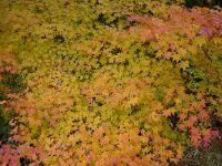 外は相変わらず寒そうな霧で覆われている。重い腰を上げた来た道を引き返す。早速例の階段で膝が痛くなる。金冷やしの時点ですでにあいたたた・・・である。今回は前回のコースと異なり小草平沢方面の尾根を下って二股に下りるコースを選んだ。しかし堀山の家までひたすらつらーい下りが続く。私は膝があまりよろしくないのでN村氏に先行してもらい後からひぃーひぃー言いながらついて行く。営業中!とノボリの立った堀山の家の前で休憩後、小草平方面の尾根に向かう。このあたりは杉の植林が盛んなのだろうか、尾根一面が杉だらけである。杉には白い紐が巻かれているがこれは一体なんだろう。N村氏が先行し、私が後から続く。日は次第に落ち、樹林の中は薄暗い。ふと地図を見る。なんとなく「違う!」と気づく。N村氏を呼び止め、しばし地図とにらめっこ。右のほうに足を進めると丁度尾根との分岐点に立っていることがわかった。危うく迷うところであった。それにしてもこの尾根は道標などが全くないためこの後も地図を見てまめに確認しながら進む。山を見上げると赤や黄色に燃えている。渡渉点で最後の休息をし、尾根を巻くと最初に川を渡った登山届のポストの横にひょっこり出た。な〜んだ、ここにでるのか〜。一歩一歩踏みしめながら、そして大きく深呼吸して「お互い毒素が抜けたなあ」と話ながら二股に向い、ゲートをくぐって駐車場に向かう。すっかり夕方だった。 実は丹沢に温泉があるという。N村氏の案内で東丹沢の七沢荘という温泉宿に到着。駐車場はすでに車でいっぱいだ。タオルを持って七沢荘に向かう。のれんをくぐると宿の中に巨大な石と二体の彫刻が鎮座してる。変わった宿やな〜。入浴料は1000円。ちと高め。しかしお客はばんばん来る。長い廊下を歩いたあと、露天風呂に到着。洗い場は外なのでかなり寒かったが、ヌルっとした温泉で気持ちがよい。帰りに旅館のパンフレットをもらったがここにもこのご主人が少々変わったご趣味をお持ちというのが感じ取れた。 ちなみに獅子座流星群は睡魔に負け見ることはできなかった(笑) |