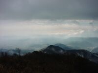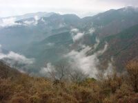 二股からゆっくりと坂道を登る。その先に銅像がある。ああ、思い出した。たしかにここにあったなあ。登山研修所はいまは使われていないのだろうか…。登山届のポストを過ぎると最初の渡渉点が現れる。この場所も記憶にあった。川を渡ると空から冷たいものが降って来る。仕方なしに雨具を着る。雨は冷たいが小雨だ。そのうちやむだろうとのんびり歩く。しばし進むとプロパンガスや灯油の缶が見えた。残念ながらペットボトルは無い。くそー!持ちやすいものは既に先行者に運ばれてしまったようである。乗越までは樹林の道を大きく深呼吸しながら進む。なんともいえないいい空気。これだけで癒される。体全体にいいものを取り込んでいるような気分に浸る。元気が出てきた。乗越まで快調に進む。乗越からは丹沢山塊の山々の頭だけがガスの上に浮かんでいる。もののけ姫オープニング状態でなんとも幻想的。尾根を進んだ先で休憩する。N村氏が用意してくれたあんパンがうまい。あづきPOWERで復活。谷をガスが埋めゆっくりと流れる姿はこんな天気の産物だろうか。前回は快晴だっただけにまたこれも楽しと割り切れる自分にすこしのゆとりを感じる。振り返ると相模湾が見える尾根をほどなく歩くと鍋割山荘が見えた。