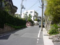 しばし川沿いを進むと道路にぶちあたり、中島橋を渡って川の右手側の道路を歩く。このあたりはかなりの急勾配だ。上から 高級外車がさかんに降りてくる。やはり金持ちじゃないと山手には住めなさそうだ。