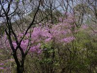 カロリーメイトと水を口に含む。地形は予想以上に複雑。エアリアマップしか持っていない自分がちょっと情けない。おおよその検討をつけてのぼりはじめる。しかしどうも踏み後も全く無く人が通った気配がぜんぜんしないような道である。谷道を進むよりは尾根道のほうがいざというときに動きやすいと考えてそのまま尾根道を進む。現在位置がつかめない焦りと体力の低下で心臓がバクバクいう。これってもしかして バテ?そう、どうやら六甲山でバテてしまったようだ。景色の見える稜線まで上がると左手に摩耶山がはっきり見える。どうやらハチノス尾根を登ってしまったようだ。ひさびさの復活でこの急登はかなり堪えた。(汗) 山椿が咲く稜線を一歩一歩進む。かなり暑い。引き返したい衝動にも駆られたがなんだか海から歩いてきた自分に申し訳なくてそのまま歩くことにした。すこしだけ緩やかになった稜線を詰めていくと巨石が鎮座する長峰山の山頂である。山頂には何組かの登山者がいた。向かい側には摩耶山がはっきり見える。海の方面をみると結構な高度差だ。食物をうけつけないバテた胃に無理やりカロリーメイトを放り込む。じぶんのふがいなさになんだか満足できないがとてもこれ以上進めない。ここはきっぱり あきらめて下山することにした。