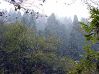 炊き出し軍団の横を通って有馬へ向かう。有馬へは4.0キロの表示がある。ここからは木々に囲まれた緩やかな道である。途中から本格的な雪になってきた。12月下旬の気温というからまあおかしくはないけど、まさかこの季節に六甲山で初雪を味わうとは思わなかった。後輩達は意外や意外楽しんでる様子だ。