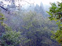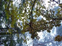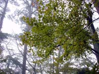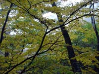| 【山行日記】 今週は4日が祝日で、また私自身が会社の研修に2日間参加したことで、仕事がたまりにたまって忙しい週であった。金曜日は東京からM部長が来たため、梅田で担当全員で焼肉を食べた。明日寝坊するなよぉ〜とみんなに言って11時頃帰宅。用意をして1時に寝る。 11月9日。6時30分頃目覚める。あれえ、外が暗いなあ。カーテンをめくると雨。(涙)おいおい、どーなってんの、おいらのツキ。これで 3連続!と天気の神様(そんなのいるのか)を恨みつつ、テレビやWebで天気予報を確認。うーん、どうやら午後晴れるようだ。これなら中止の案内を出さなくてもいいだろうと判断。しかし雨は小降りになるが、晴れ間はのぞかない。予報を信じて我慢する。ピロりんが渋滞で少し遅れて私の家に到着。集合時間を少し過ぎて阪神芦屋駅に到着した。のぶGと番長はすでに到着しており、西村コーヒーでお茶をしていたようだ。 さっそく出発するぞー!と思ってバス亭を探すが、見当たらない。あれ???市営駐車場の耳の遠そうな爺さんにバス亭を聞くと遠くを指差した。なるほど、駅の北側の川沿いにあるのかあ。しばらくするとバスが来た。ここが始発である。下から見上げる六甲山はすこし雪を被っているように見えるが、厚い雲に稜線は覆われていてよく見えない。阪急芦屋川駅を経由して東お多福山登山口へ向かう。麓はすっかり紅葉しており、赤や黄色の織り成す景色がすばらしい。芦屋ゲートで2名が下車し、東お多福山登山口では中高年グループの7名と我々が下りた。各自体操をした後、出発。途中、分岐を間違え、高級住宅地に入りそうになって引き返す。(汗)登山口の標識に従い、山に足を踏み入れる。最初は暗い感じの森の中を進む。特に看板があるわけでもなく、薄い踏跡を見ながら進む。