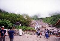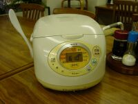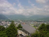 どうやら客は私一人のようだ。6時まで部屋でまったり。旅館の横を流れる側溝の水の流れの音が心地よい。うとうとしてしまう。さあ、飯だ。炊飯器がでーんと置いてあった(爆)大盛2杯食べた 。部屋に戻り、TVをつけるとBSで「ビッグウェンズディ」をやっていた。サーフィンの映画である。 海の日ゆえの放送なんだろうけど、なんだか波のしぶきが雨に見えてしまい、「・・・」。神様はほんまにいたづらがお好きなようで・・・。おもわず最後までみてしまった。(笑) 7月22日(火) 5:30頃目が覚める。は!外が明るい!窓を開けると「晴れてるやん・・・」。白馬三山がはっきり見える。せっかくなんで観光して帰ろうと思い、朝風呂に入りながら案を練る。朝食をとったあと、再び外を見ると、ありゃ、山は雲の中に。その後、どんどん雲が湧いてきて山は完全にかくれてしまった。下界は晴れ。涼しいので窓を開けて走る。