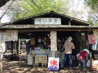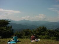 高尾山につくとすで頂上にはたくさん人が集まっていた。天気は上々。富士山は丹沢山塊の向こうによくみるとチョコンと頭を出していたが、写真ではかすかにしかわかりません。シンボルを見たことでまずは満足。二等三角点を記念撮影しました。ここで美女Uさんに高尾山のバッチを御土産にもらってしまった。高尾山・・・次はいつ来るのかな〜。携帯の電波が届かないので美女Eさんとは連絡がとれないが、高尾山登山口で「いま新宿」との連絡がきていたので昼頃には景信山で合流することになっているとのこと。しばし休んだあと、城山に向けて出発。電波塔が見えるのですがこれが意外と遠い!高尾から急な坂道を下っていく。途中には茶店もあり、なんだかいいかんじ。途中で野点をしているご老人もみかけました。シャカシャカやってました(^^) 城山までは尾根道ですが、意外とボリュームがある。巻き道もたくさんあるだが、うっかり楽チンだからと平らな道をとおると「???」なところにでてしまうことがあった。実はこのころになるとなぜか右の足の指が痛くなってきた。あまり指をふんばって歩くことがなかったからか?我慢してのぼり続けるとようやく城山に到着。相模湖の方面がひらけていて草地がきもちいい。ここも茶店と休憩スペースがどどーんと確保されている。ここの名物はなめこ汁らしいのが、注文してる人のを覗き込んでみるとどうも豆腐のほうが多いスマシのような汁だったのでパス(汗)違っていたらごめんなさい。ここで美女Uさんにラムネをご馳走になった。なんだからなにからなにまで悪いなあ〜。ゴチになります。