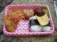 雨が降るか降らないか微妙なところだったので今回も何も用意できなかった。阪急芦屋川のコンビニで購入。どーも日帰り登山は気合が入りません。 | 今回は2回目のコースのため、前回のようにどきどき感も少なく、消耗もすくなかった。おにぎりで十分であった。コンビニでミニドーナツを購入したが2個しかたべなかった。 いつもは500ml1本で十分だが今回は暑さのせいもあり、もう一本ほしかった。 |