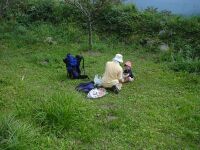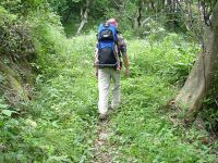 | 奥の家は既に廃屋。宿直のおっさんと一緒に昨晩風呂にいっしょに入ったときに聞いたが、ここ数年で急に道路が綺麗になったとか。田んぼや畑は3年手入れしないと駄目になるというてた。海も近いし、田んぼも畑もあるので極楽とんぼになりたきゃすぐなれるぞーと言われた(笑) |