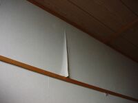 | いちおう部屋の形はしているが壁紙があちこちではがれてきている。これがまたいいかんじなのだ。ここ一箇所だけでなくあちこちべろんべろん。 |