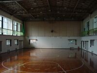 体育館もそのまま残っていた。いまは有料で開放しており、大学の応援団などが合宿で利用したり、地区のスポーツ大会をココで開催するらしい。 |