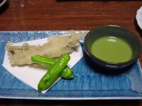 穴子のてんぷら。たれはわさびと山椒でした。最後はごはんと味噌汁とへしこを食べてデザートで口直しをして終了。あー、まったり。このままここで寝転びたかったが、気合を入れて国民宿舎まで移動。夜の海岸道路はちと怖かった。 |