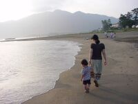 両親の泊まるホテルからは天橋立が目の前に見えるのだ。眺めのいい本当にいい部屋。さすが高級旅館。夕食だけいっしょに部屋で食べることが出来ると聞いていたが、仲居さんがお風呂もどーぞと言うてくれたのでお言葉に甘えてドボン♪ |