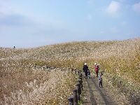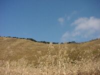次第に晴れてきた。空の青とススキの色のコントラストがなんとも美しい。しばし立ち止まって空を見上げる。 |