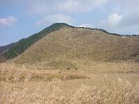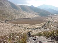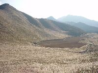 お亀池もだいぶ遠くなってきた。ここから見るとたしかにオカメの顔に似てるような気もするな(^^)ガセネタでもいいかな |