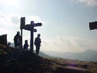 亀山峠に到着。方位盤の後ろに隠れてオヤツタイム(^^)新管理人は方位盤の上に腰掛けて踏ん反りかえっていた。 |