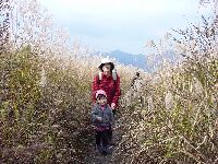 新管理人も元輝君も自分の足で山道を登る。元輝君はさすがお兄ちゃんだけあって歩くのが速い。 |
