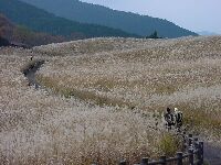 | 太陽の光を浴びて銀色に輝くススキの穂。 |