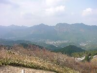 眼下にお亀池が。一緒に登っていた小学生が「おかめの顔みたいだからオカメ池やで〜」というていたがはて真偽のほどは?伝説では大蛇が住んでいたとか。 |