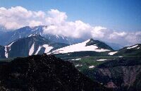 このサンダーバードは立山まで乗り入れしてくれるため、富山からあのトロい電車に乗らなくて済む。ケーブルカー、バスと乗り継ぎついに室堂に到着。さあ、もうあとには引けないところまできてしまった。軽く体操をしたあと、出発。ペースがつかめないので前をあるく登山者グループをペースメーカーにさせてもらう。1時間後一の越に到着。玉のような汗がこぼれおちてくる。浄土山の上りと遠方に本日の幕営地の五色が原が見えたときは「もぅやめようかな〜」「止めて立山周辺で遊んで帰ろうかな」と悪魔のささやきに襲われたが、なんとか気力でふりきり、五色が原に到着。