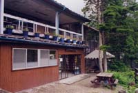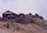 燕山荘への最後の上りを一歩一歩登って9:00に燕山荘に到着。さっそくテント場料金(500円)を支払いテントを設営。昨日はたったの2張りだったそうだ。やはり山は平日のほうがいいらしい。ここで今回はじめて山に携帯電話を持ってきたので(京セラ製のKY201!)早速友人達にイヤミの電話を入れるべく電話するがあいにく留守。面白くないので以下のようなメッセージを吹き込んでおいた。「あ、俺やけど、今燕岳の山頂!めちゃ天気ええぞぉ、最高やわ。」あとで非難ゴーゴー。