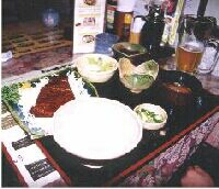 嫁はんが注文した一品。みそカツは中部地区のお店であればおおよそ食べることができる料理であるが、みそベースのたれを揚げた後に上からかけるか、もしくは揚げた後にみそだれの中に全体を漬けこむかのどちらかである。ここのみそかつは後者で比較的あっさり味であったため、これが逆にあぶらっこさと濃い味によるいやな満腹感(いわゆるもたれ)がなく大変おいしかった。