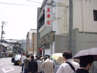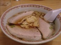 大和を十分堪能したので、今度は尾道市街に突入し、本日の二つ目の目的である尾道ラーメン「朱華園」を目指す。パーキングに車を停めて歩くとすでに行列。すごい行列だ。30分ほど待たされた。席はあいにく3人席がないため別れて座る。餃子とチャーシュウメンを注文。餃子は普通かな?出汁は魚系+鶏がら系だけど、豚の背脂をつかうことで、こってり感もあり、思わぬ山登りをした僕らには大変おいしく感じた。尾道ラーメンの人気NO.1らしい。この尾道ラーメンという名称はもともとは福山のおみやげメーカーがブランド名として名づけたものだとか。